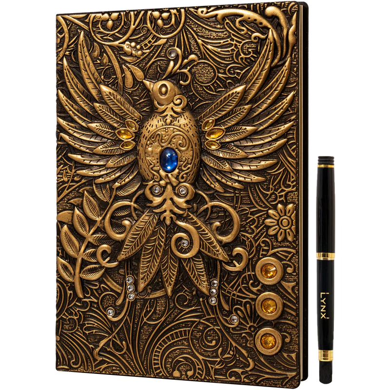 3D FAUX-LEATHER NOTEBOOK | FANTASY/DND DUNGEON MASTER(DM)/PLAYER JOURNAL | Gold Phoenix | LYNX