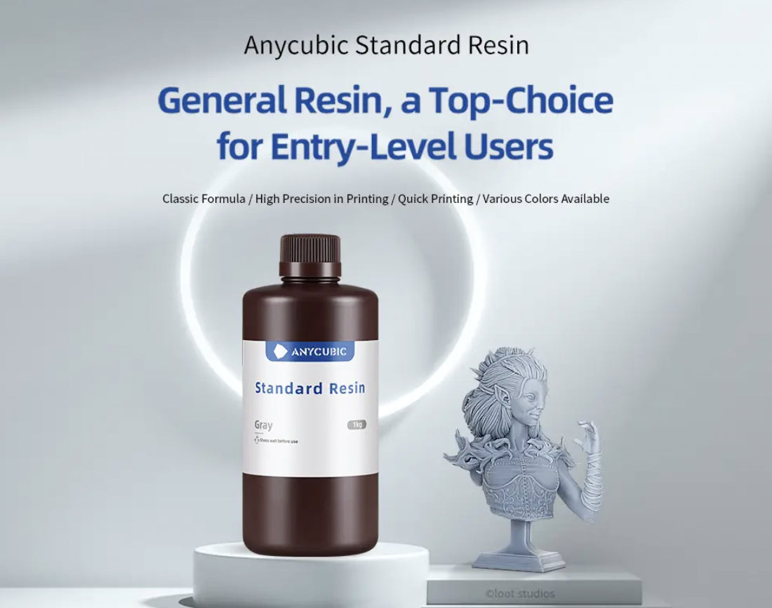 - Top-Choice for Entry-Level Users: Following the classic formula, Anycubic Standard Colored UV Resin is well integrated and in balance with the performance on printing precision, hardness, fluidity, etc.