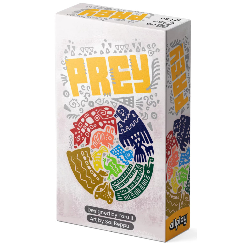 Prey is a 12-trick trick-taking game where 3-4 players play the first six tricks with one side of numbers (predators), then FLIP their cards over to play the final six (prey). You must follow suit if you can.
