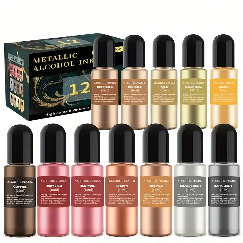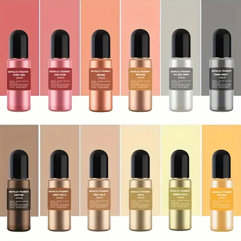 12-Color Metallic Gradient Paint Set, 10ml - Crystal Epoxy Resin Fluid Dye for DIY Crafts, Graffiti Art, Model Coloring & Resin Casting