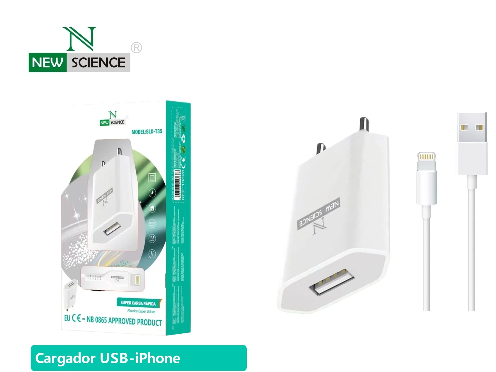 Carregador 240v New Science Carga Rápida Sld-T35 Branco 2.4a 12w Para iphone / ipad - NOVO