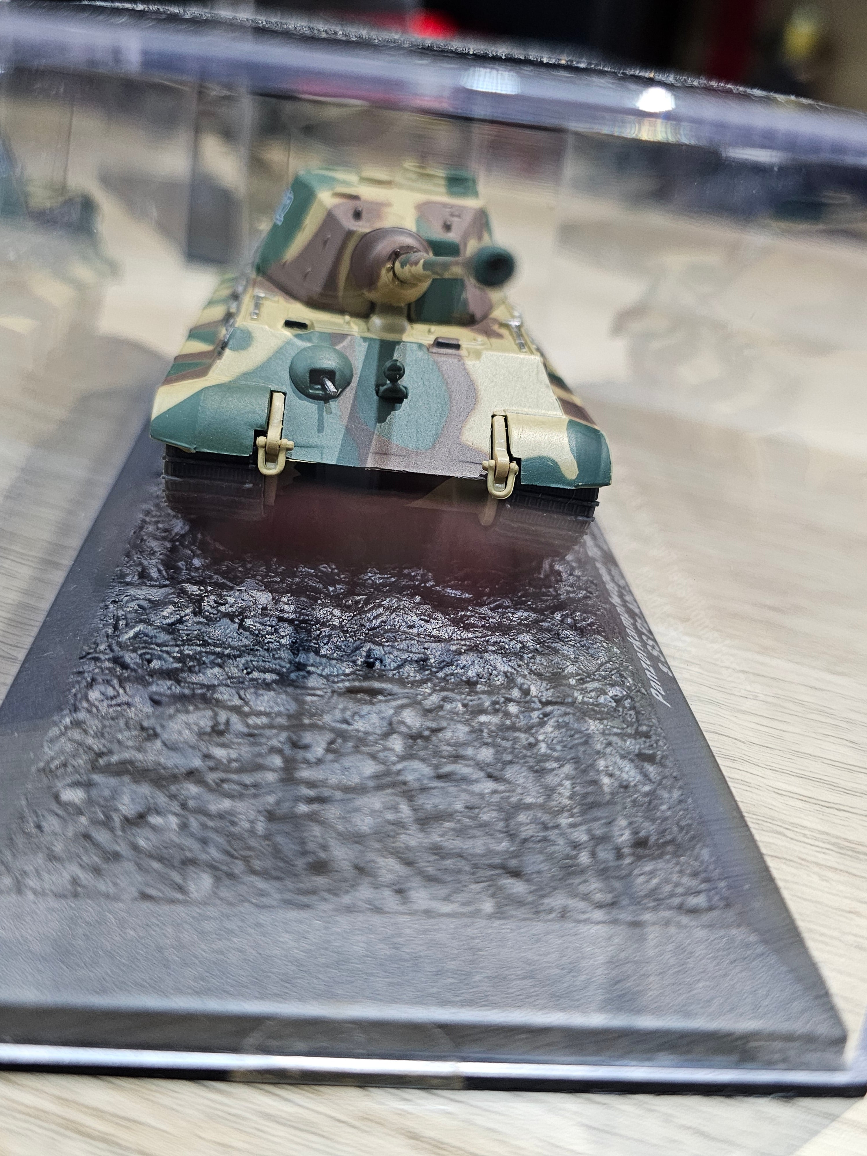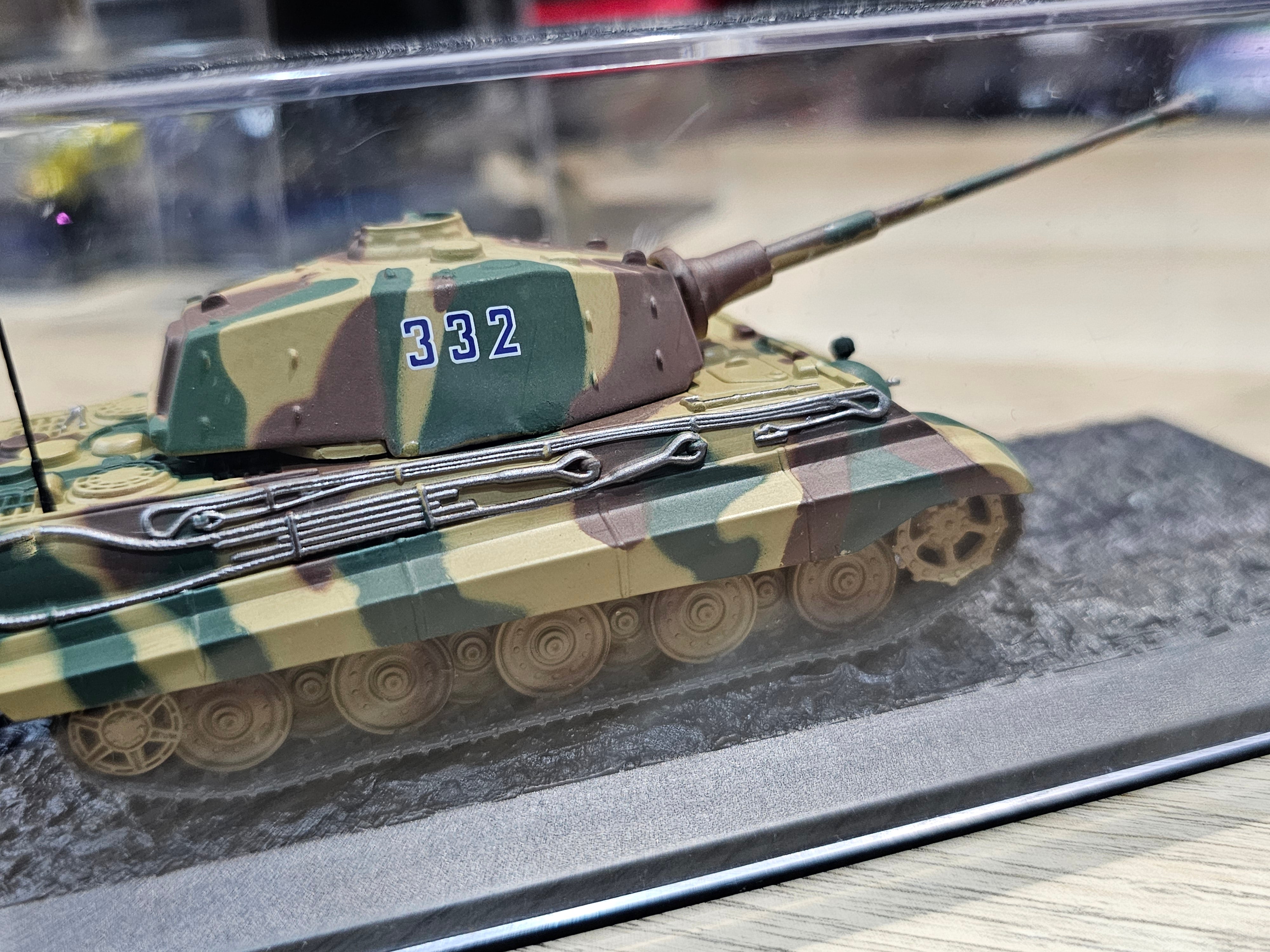 - Detailing: Highly detailed with accurate paintwork, decals, and weathering to replicate the look of the Tiger II during the Ardennes Offensive.