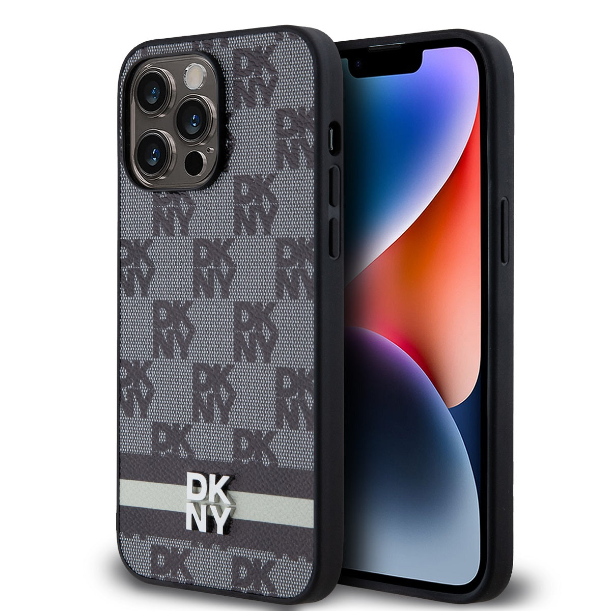 DKNY PU Leather Checkered Pattern and Stripe Case for iPhone 15 Pro Max Black