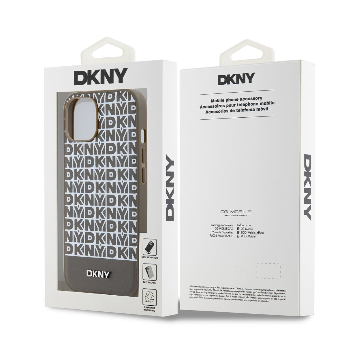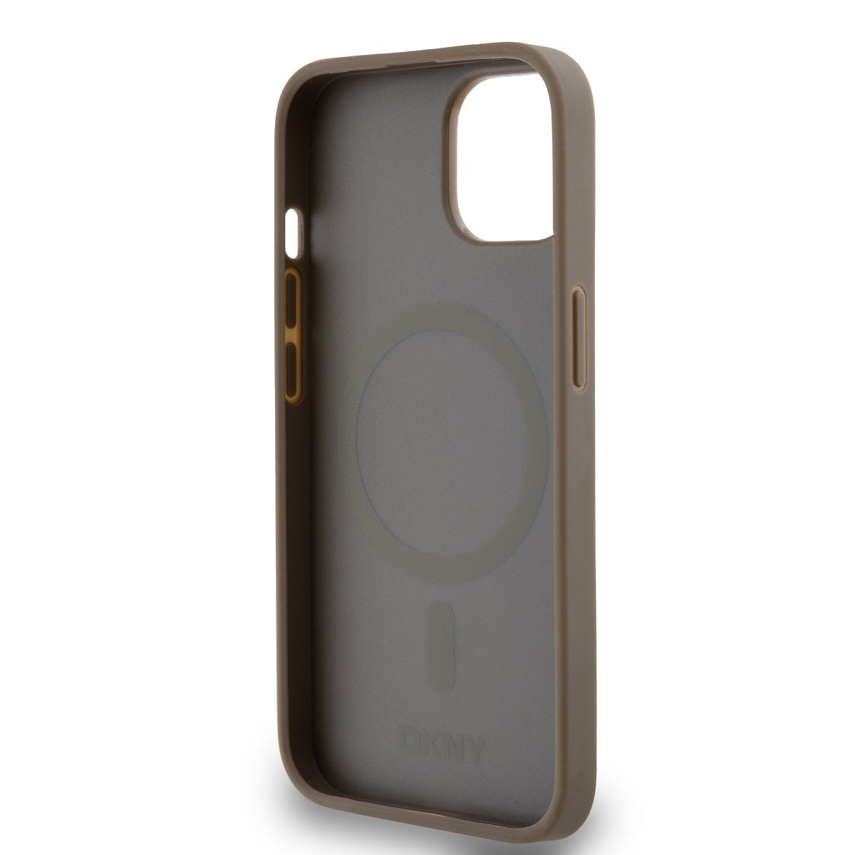 DKNY PU Leather Repeat Pattern Bottom Stripe MagSafe consists of the repeated "DKNY" brand logo, which creates an elegant graphic effect.