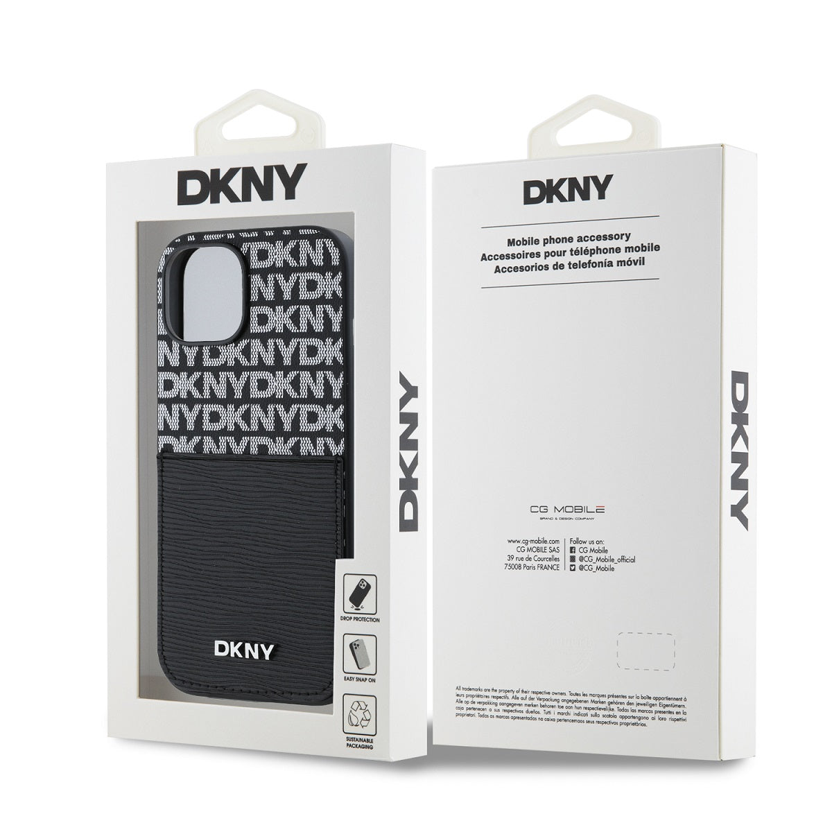 The DKNY PU Leather Repeat Pattern Card Pocket is made of high-quality PU, which ensures a long life and a precise fit on your phone.