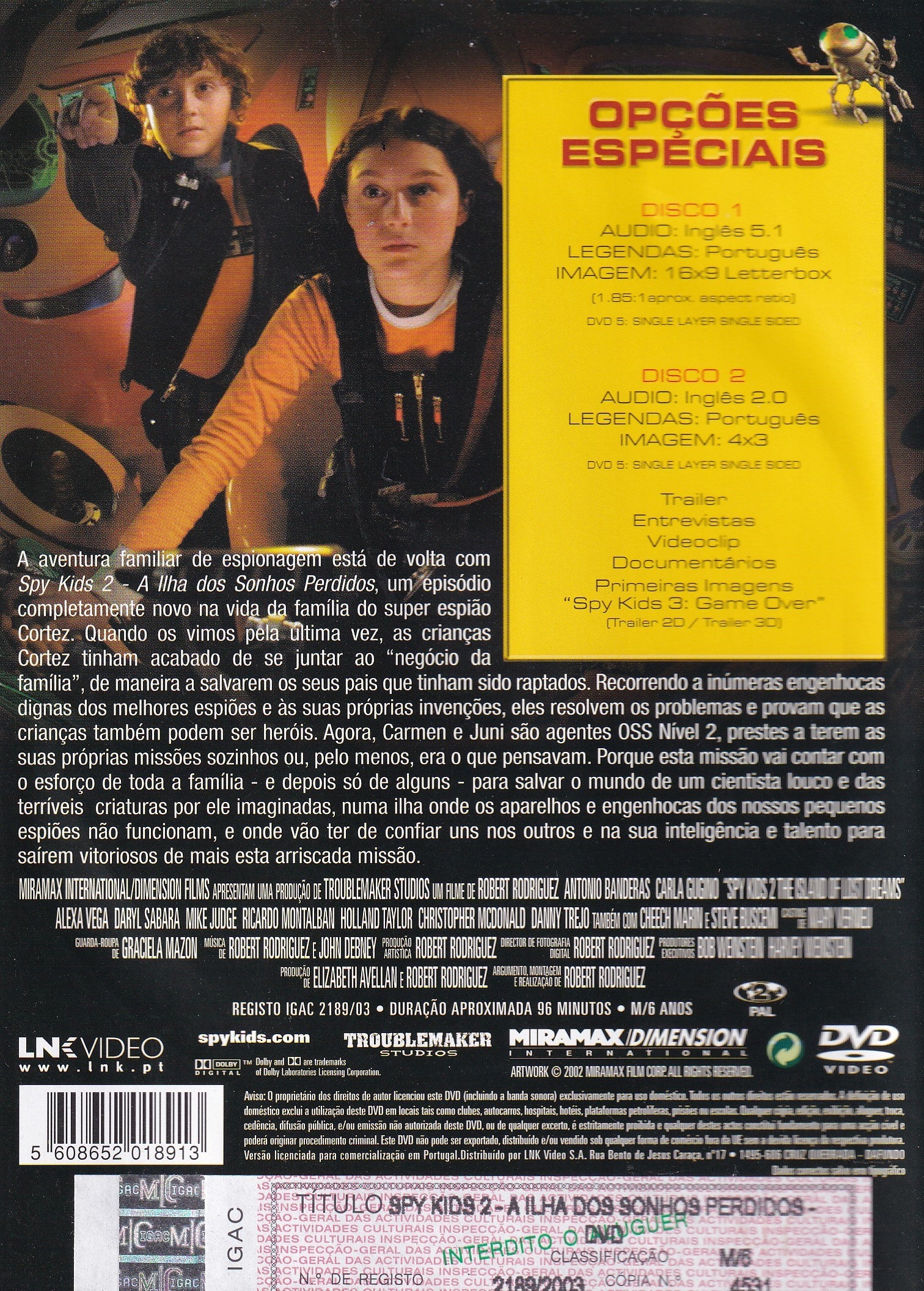 DVD SPY KIDS 2 A ILHA DOS SONHOS PERDIDOS (EDIÇÃO ESPECIAL 2 DISCOS) - USADO