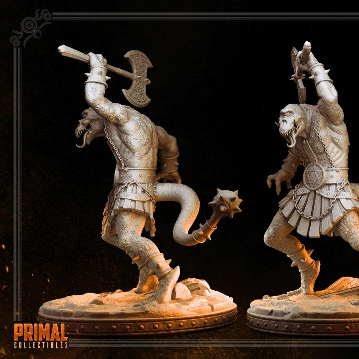 Reptile Minion Skhaar pre supported for 2 different scales: 32mm and 75mm by PRIMAL collectibles.