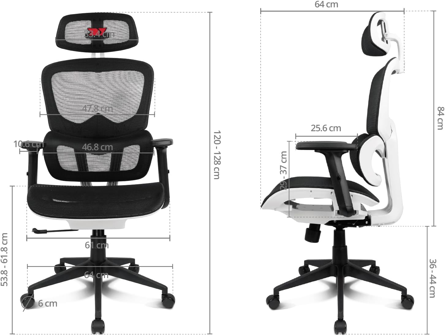 - Rodas de nylon e base em forma de estrela - almofadas lombar e cervical integradas