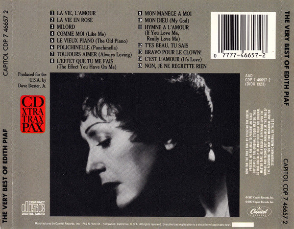 CD - Edith Piaf – The Very Best Of Edith Piaf (Immortal "Little Sparrow" Of France) - USADO
