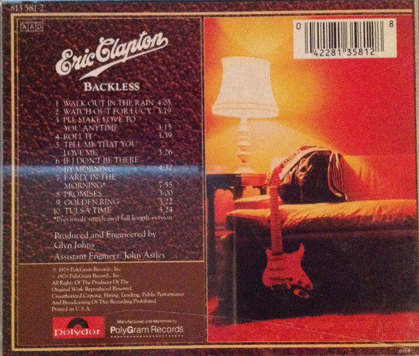 CD - Eric Clapton – Backless - USADO