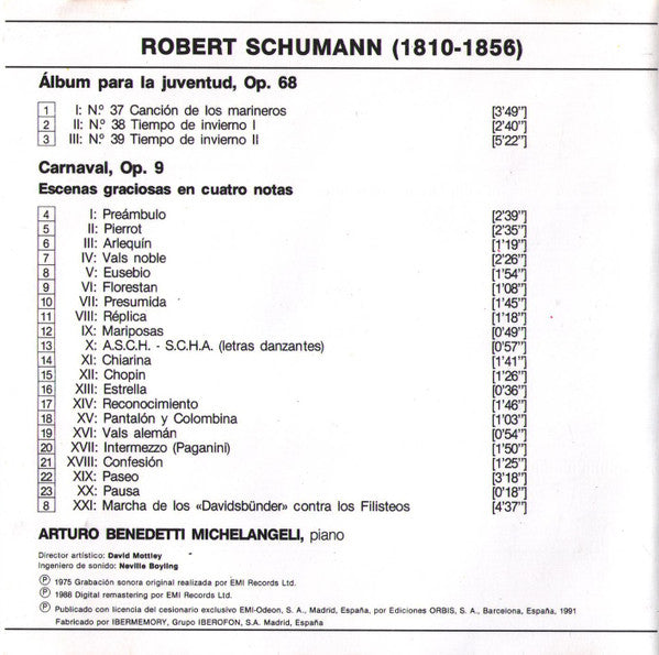 CD - Schumann*, Michelangeli* – Álbum Para La Juventud - USADO