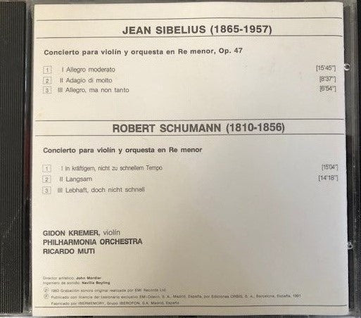 CD - Sibelius* & Schumann*, Muti*, Philharmonia Orchestra – Conciertos Para Violín Y Orquesta - USADO