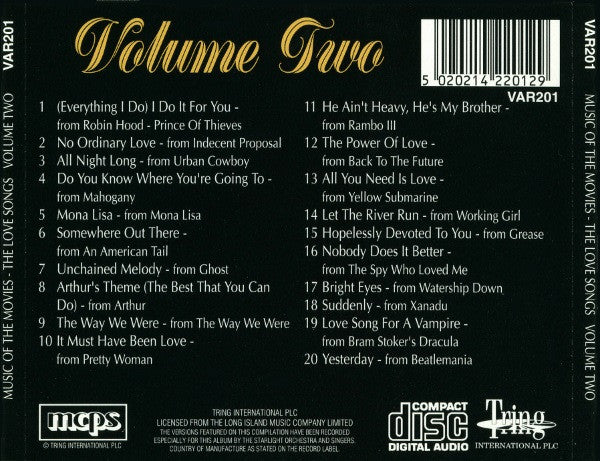 CD - The Starlight Orchestra And Singers* – Music Of The Movies - The Love Songs Volume Two - USADO