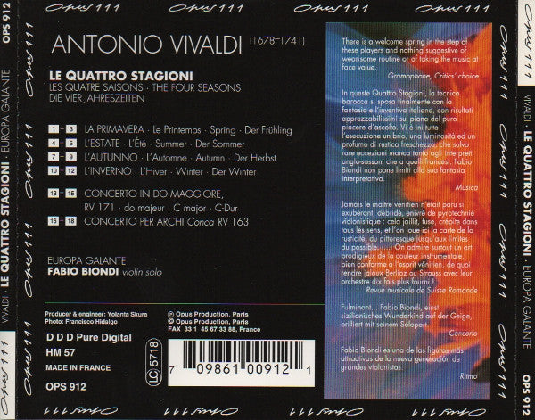 CD - Vivaldi*, Europa Galante, Fabio Biondi – Le Quattro Stagioni - USADO