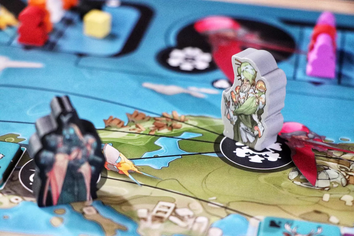 Excavation Earth is divided into three rounds, each of which starts with players drafting a hand of multi-use cards that will be used to perform actions. Players then take quick turns playing actions that allow them to move their explorers around the world map, excavate for artifacts, and deploy traders to bazaars and influencers to affect prices and wheel and deal on the black market.