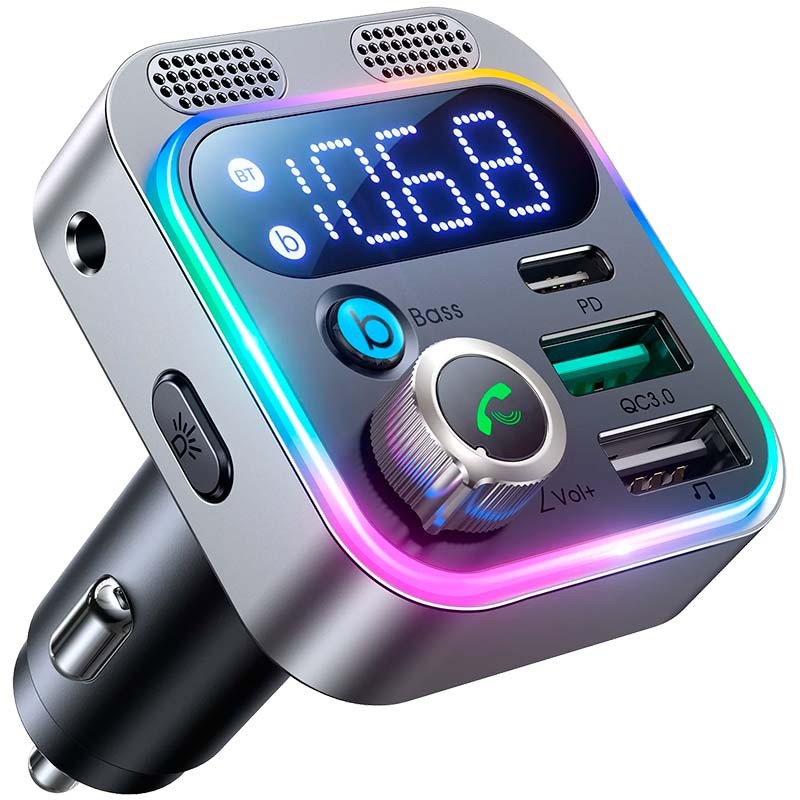 O Joyroom JR-CL16 é um transmissor de áudio automotivo com tecnologia Bluetooth 5.0 e porta auxiliar. Com ele, você pode atender e fazer chamadas com viva-voz ou interagir com o assistente de voz do seu telefone enquanto dirige, graças ao microfone duplo integrado com cVc cancelamento de ruído. Ele também inclui três conectores de carregamento, compostos por duas portas USB-A QC de até 16 W e uma porta USB-C PD de até 30 W.