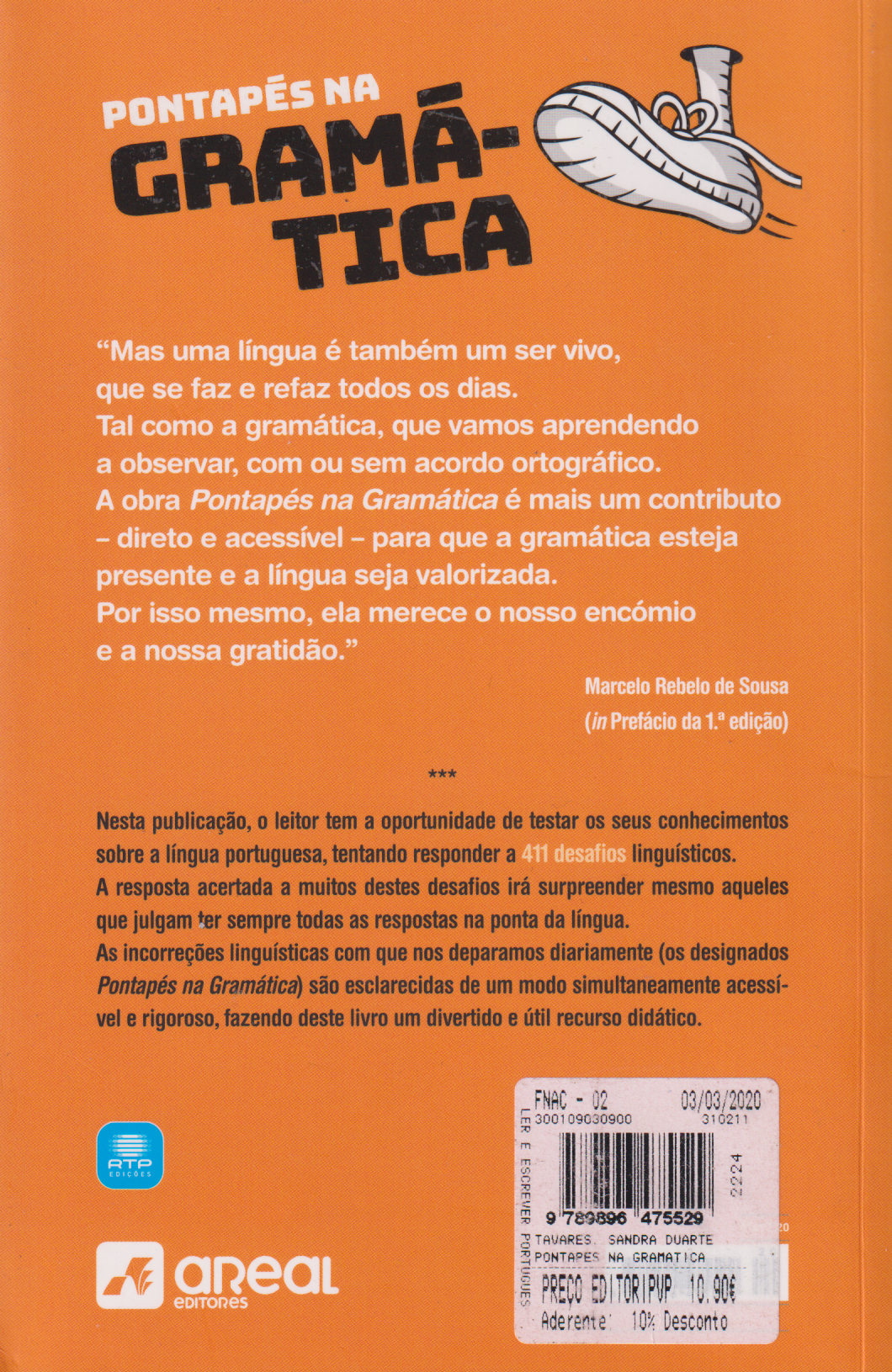 Nesta publicação, o leitor tem a oportunidade de testar os seus conhecimentos sobre a língua portuguesa, tentando responder a 411 desafios, os quais permitem às autoras explanar os diferentes tipos de incorreções linguísticas com que nos deparamos diariamente.