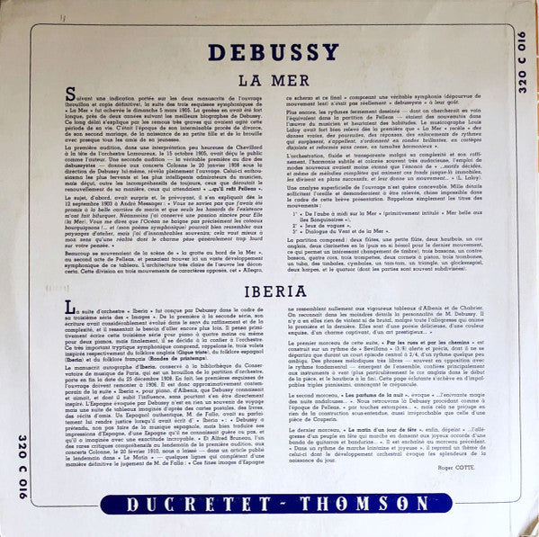 LP VINYL - Debussy* / Orchestre Du Théâtre Des Champs-Elysées Direction: D.-E. Inghelbrecht* – La Mer / Iberia - USADO