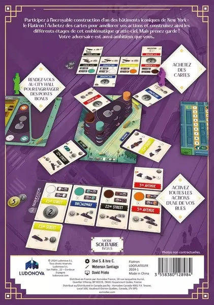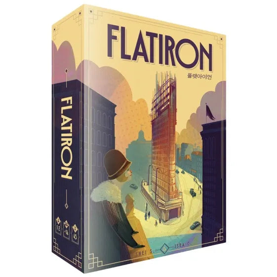 Suggested AgeAge: 12+ The Flatiron Building, originally known as the Fuller Building, is a historic 22-story skyscraper located in Manhattan, New York. It is known for its distinctive triangular shape reminiscent of an old-fashioned clothes iron. Since its construction in 1902, it has become one of the most recognizable icons on the New York City skyline, situated at the intersection of Fifth Avenue with Broadway, East 22nd Street, and East 23rd Street. In Flatiron, you will be transported to the Big Apple to participate in the construction of this iconic building. Both you and your opponent will need to develop your companies by adding new cards to your personal board, thereby allowing you to perform more and better actions on each of the surrounding streets. The ultimate goal is to earn more points than your opponent, primarily by undertaking construction tasks but also by maintaining an impeccable public image and adhering to the decrees of the New York City Council. When the roof is placed, and everything is ready for the grand opening, the game ends. Victory and recognition will go only to the player who has accumulated the most points.