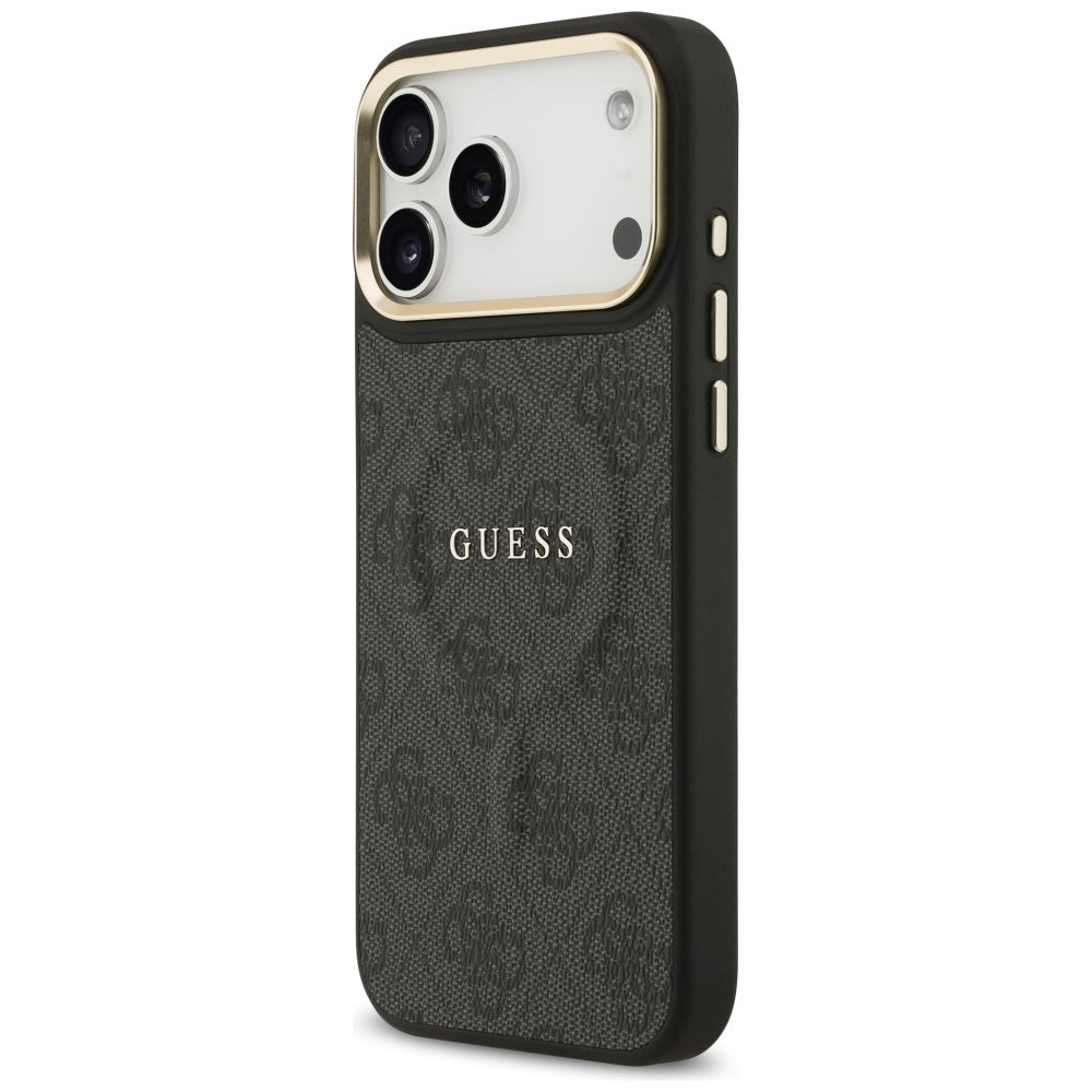 Guess PU Leather 4G Gold Frame MagSafe Case for iPhone 17 Pro Max Black