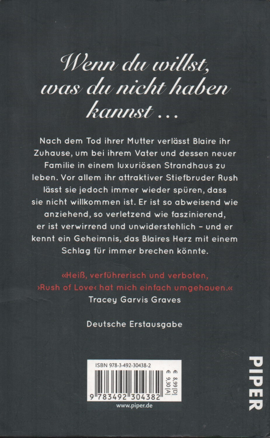 Rush tem de 24 anos. Ela é a única coisa que está fora de alcance. O dinheiro que recebe do pai ausente, o desespero da mãe que faz tudo para conquistar o amor do filho e o seu charme pessoal são os três motivos pelos quais Rush nunca ouviu a palavra “não”. Após a morte da mãe, Blaire deixou a pequena quinta no Alabama para ir viver com o pai e nova família dele numa luxuosa casa de praia na Florida. Ela não está preparada para esta mudança de vida e sabe que nunca irá encaixar neste mundo. Para piorar a situação, o pai de Blaire viajou para Paris com a nova mulher, deixando-a sozinha o verão inteiro com Rush, que não parece nada satisfeito com a chegada da sua nova “irmã” por afinidade.