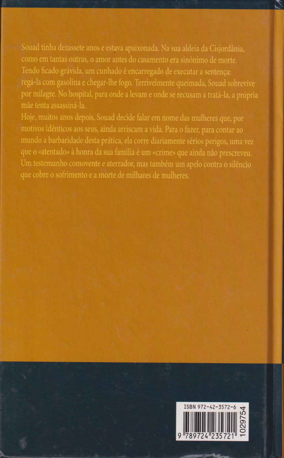 Hoje, muitos anos depois, Souad decide falar em nome das mulheres que, por motivos idênticos aos seus, ainda arriscam a vida. Para o fazer, para contar ao mundo a barbaridade desta prática, ela corre diariamente sérios perigos, uma vez que o “atentado” à honra da sua família é um “crime” que ainda não prescreveu.