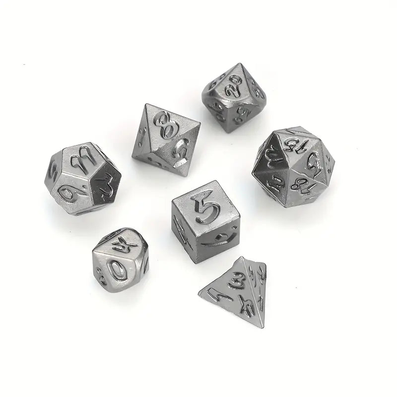 7 Pcs Dnd Dice Set Mini Metal Antiuique Silvery