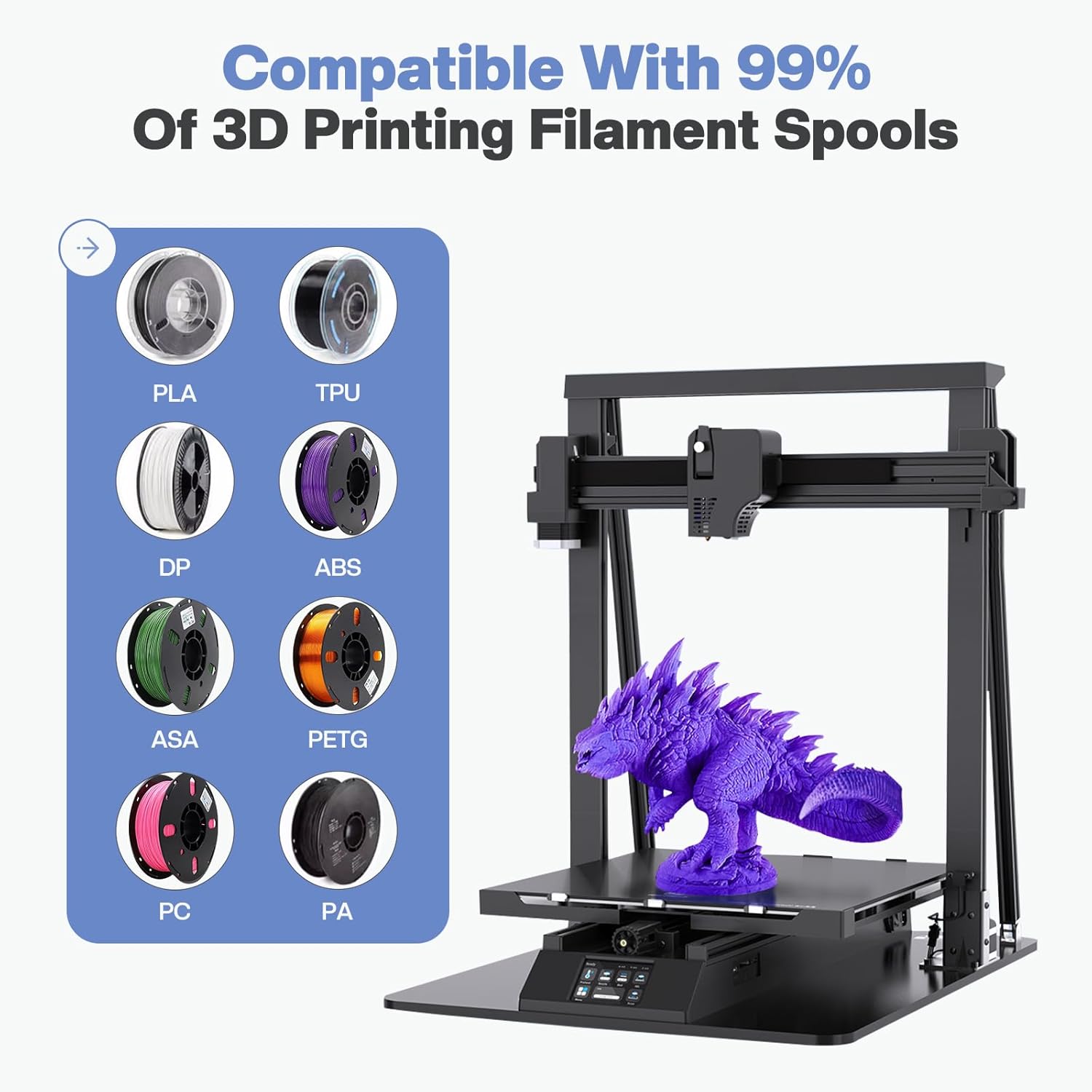 Compatível com a maioria dos filamentos 3D (PLA, ABS, PETG, TPU, Nylon, entre outros)
