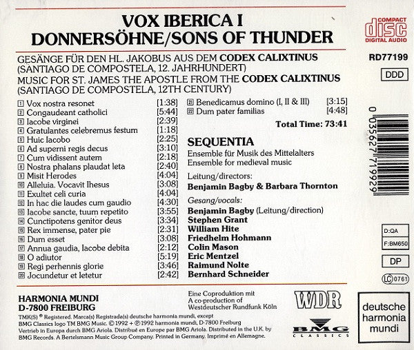 CD - Sequentia (2) – Vox Iberica I - Donnersöhne / Sons Of Thunder - USADO