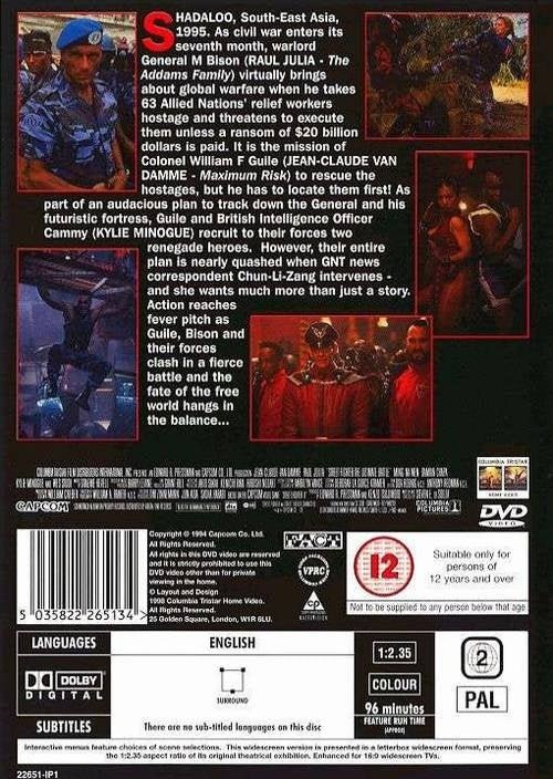 Street Fighter é um filme de ação inspirado na famosa série de videojogos da Capcom. Após o vilão General Bison assumir um golpe militar e dominar a nação fictícia de Shadaloo, um grupo de lutadores liderado pelo Coronel Guile (Jean‑Claude Van Damme) une forças para enfrentar Bison e derrubar seu regime opressor. Repleto de sequências de combate encenadas com energia e estilo cinematográfico, o filme combina ação explosiva com referências aos personagens clássicos dos jogos.