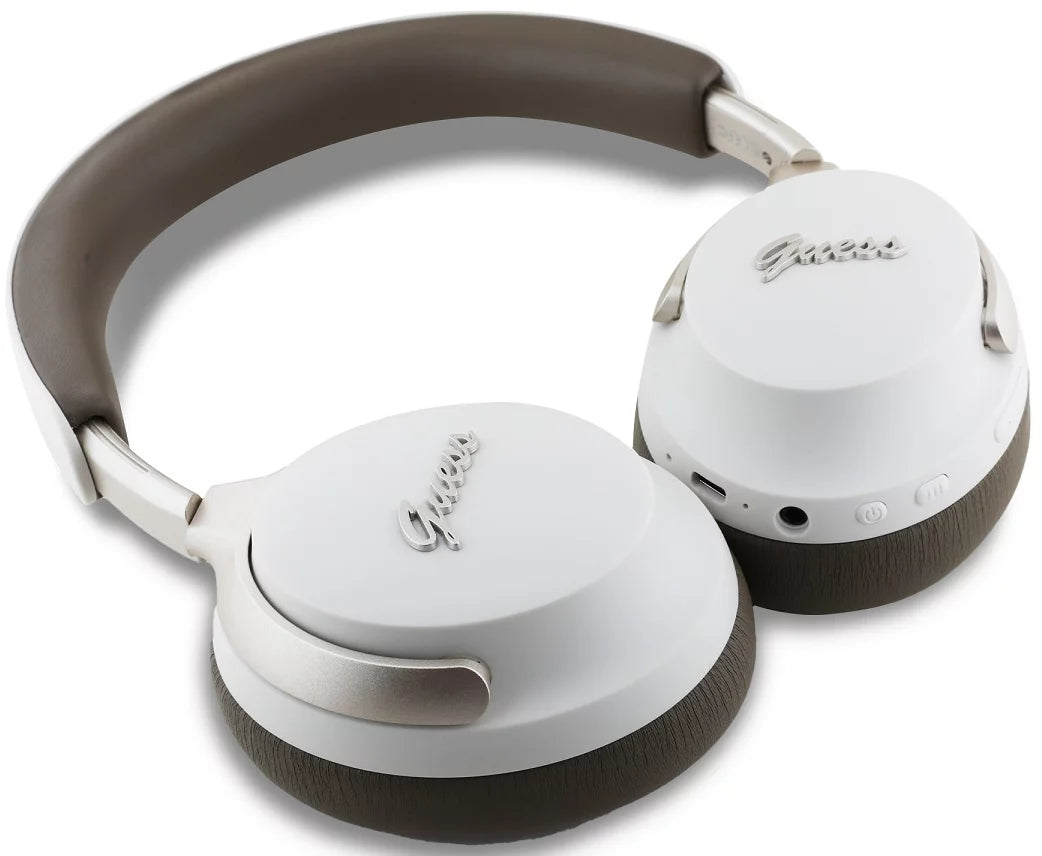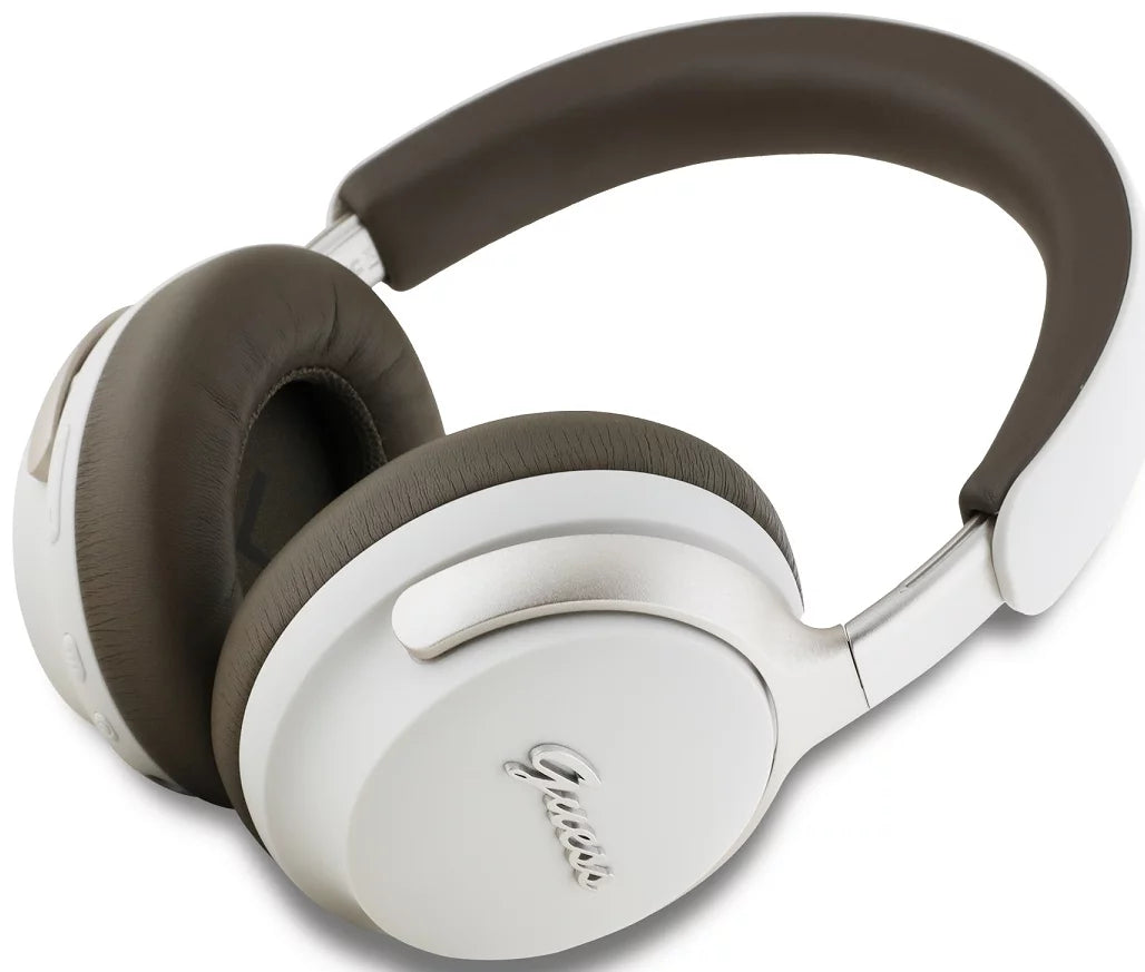 Guess PU Leather Script Logo ANC/ENC Wireless Headphone Beige | BLUETOOTH