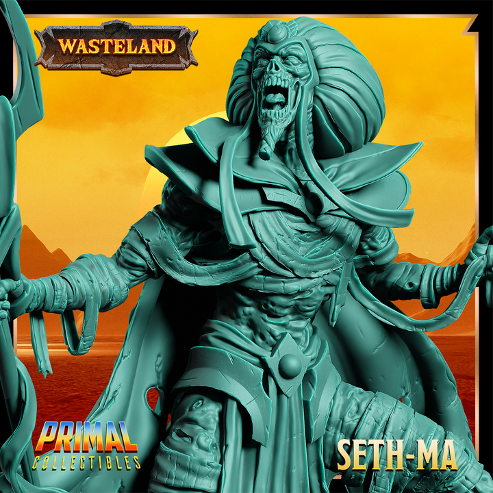 Sorcerer King Seth-Ma pre supported for 2 different scales: 32mm and 75mm by PRIMAL collectibles.