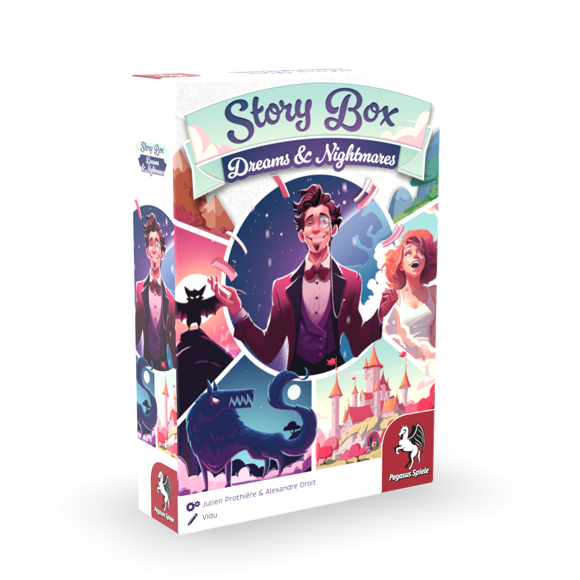 Story Box invites players to share stories together with its theme boxes: Adventures, Dreams & Nightmares, and Polar. Picture cards are played onto a story deck in no particular order. This quickly unfolds a crazy adventure, a nightmare, or a thrilling story set in the ice. There are no limits to the players' creativity when interpreting the cards. In the second phase, the story deck is turned over, and the story is retold together from memory or card by card. The cards help players remember all the details. All three boxes can be played independently of one another.