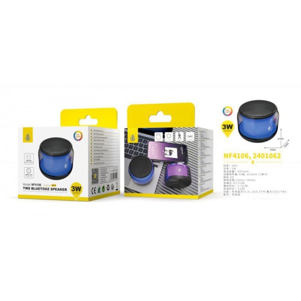 Bluetooth Speaker RGB One+ NF4106 BLACK / AUXILIAR IN 3.5 E MICROSD