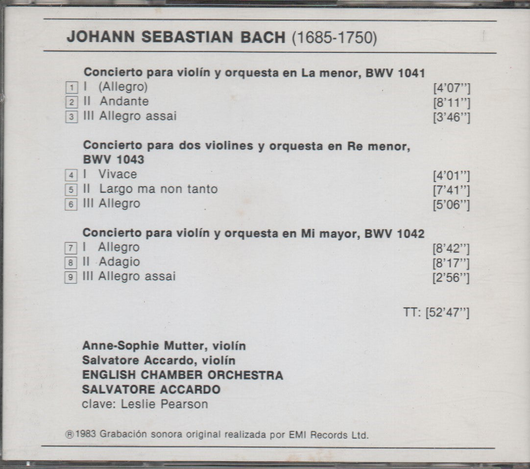CD - Bach*, Mutter*, Accardo*, English Chamber Orchestra – Concierto Para 2 Violines BWV 1043 / Conciertos Para Violín BWV 1041/BWV 1042 - USADO