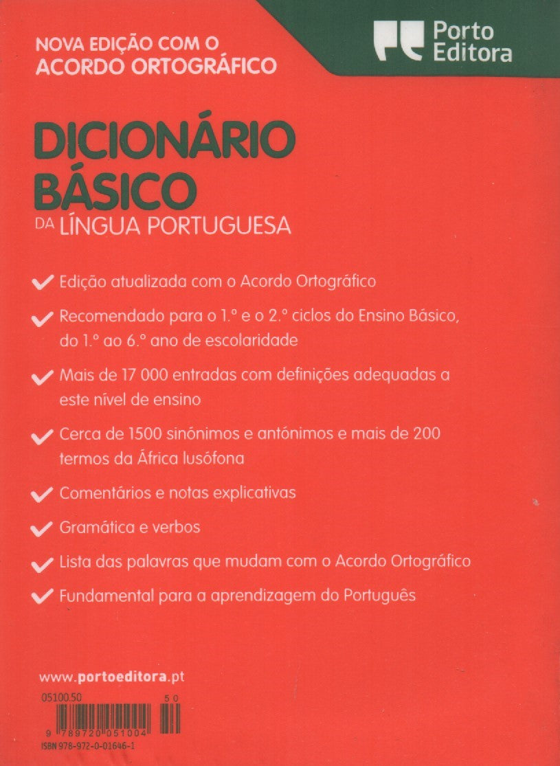 O Dicionário Básico da Língua Portuguesa foi criado a pensar especificamente nos alunos do 1.° ciclo do Ensino Básico, registando todas as palavras do programa curricular deste nível de ensino.