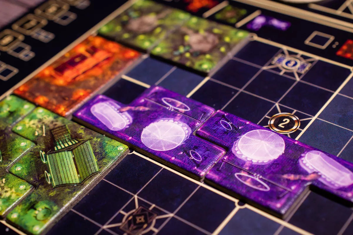 In the game, players are competing to attract the largest audiences to their shows, featuring magnificent performers. In the process, you must expand your camp by placing Tetris-style tiles on your player board, gather elements needed for the shows, and set up performances in your tents.