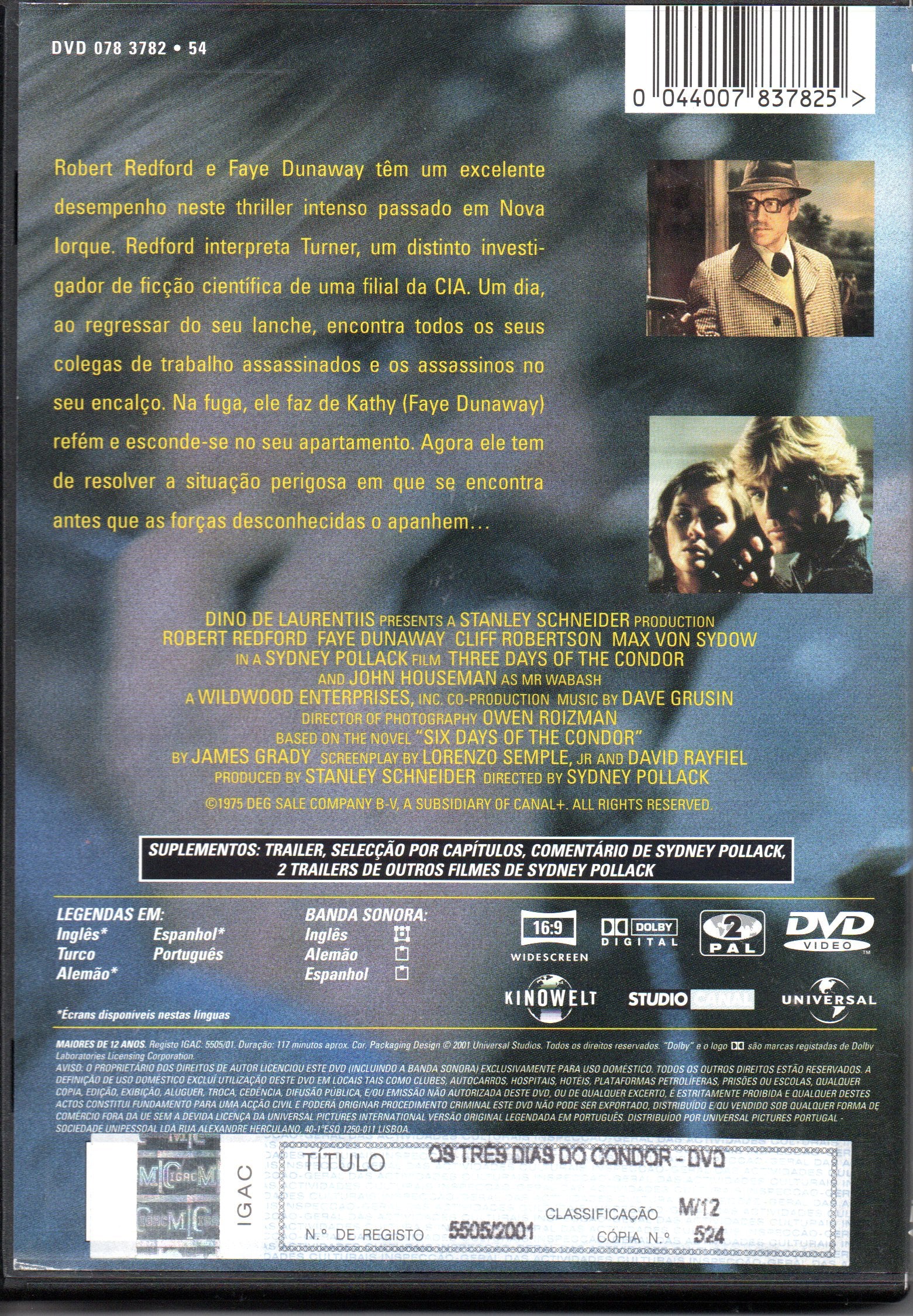 DVD OS TRÊS DIAS DO CONDOR / USADO