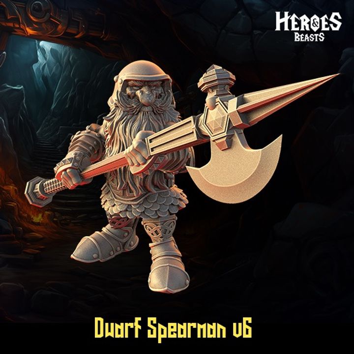 Armed with a brutal hybrid polearm and clad in scale armor, this dwarf spearman is ready to hold the line or lead the charge. With a piercing stare and grounded stance, he's perfect as a disciplined soldier, elite guard, or formation leader in your fantasy wargame or RPG.